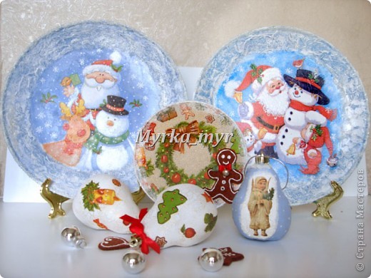 и еще - обратный декупаж, эффект матирования стекла, глиттер серебряный.... Обе тарелки пригодны для использования.